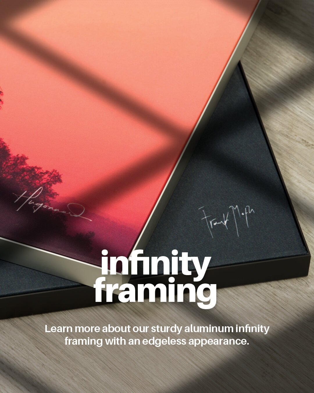 Infinity Frames put the emphasis on the artwork by surrounding the art in a minimal frame. Display artwork the way it was intended with modern framing.