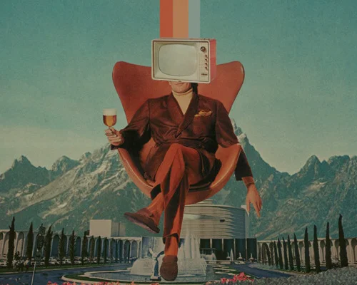 Frank Moth is a duo based in Thessaloniki, Greece that uses the collage technique to create vintage surreal compositions and retro pop floral portraits in distinctive color palettes that make up his critically acclaimed style. His artworks revolve around the effort of man to find a balance between nostalgia and the distant future. In an attempt to create harmony between people and their surroundings or feelings, he uses eternal elements of colors, flowers, geometric shapes and touches universal concepts like Love, Eternity, Humility, and Remembrance. Frank Moth’s work has been featured in many art and design publications worldwide like Colossal, Design Milk, Contemporary Art Curator, Buzzfeed and more.