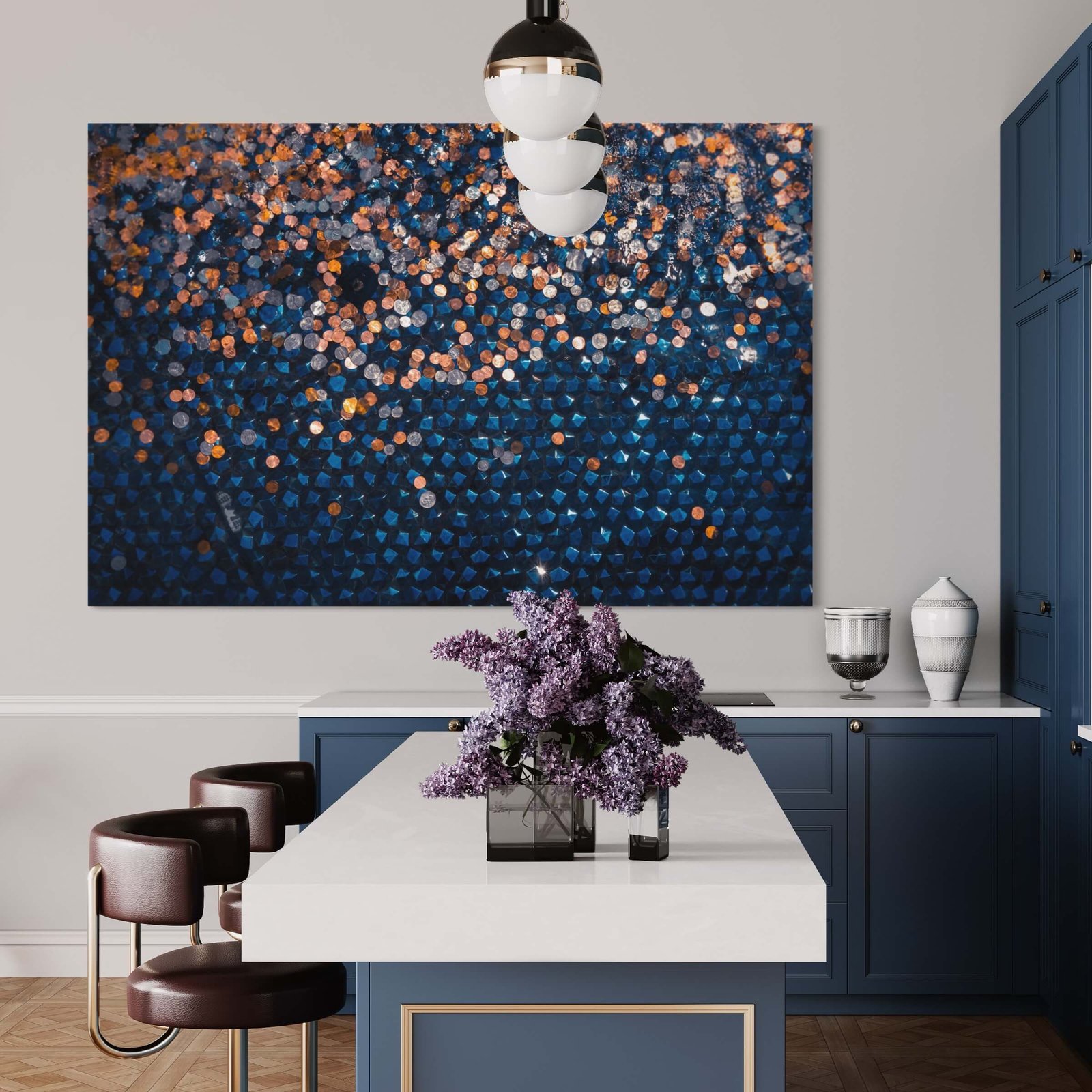 Twinkling copper highlights scatter across deep navy blue, creating a calm night-sky illusion that adds quiet sophistication to any décor. Wishes Granted brings refined texture and gentle light play to living rooms, bedrooms, offices, and more.
