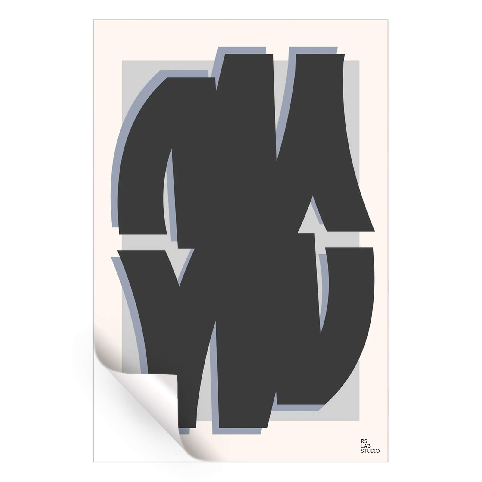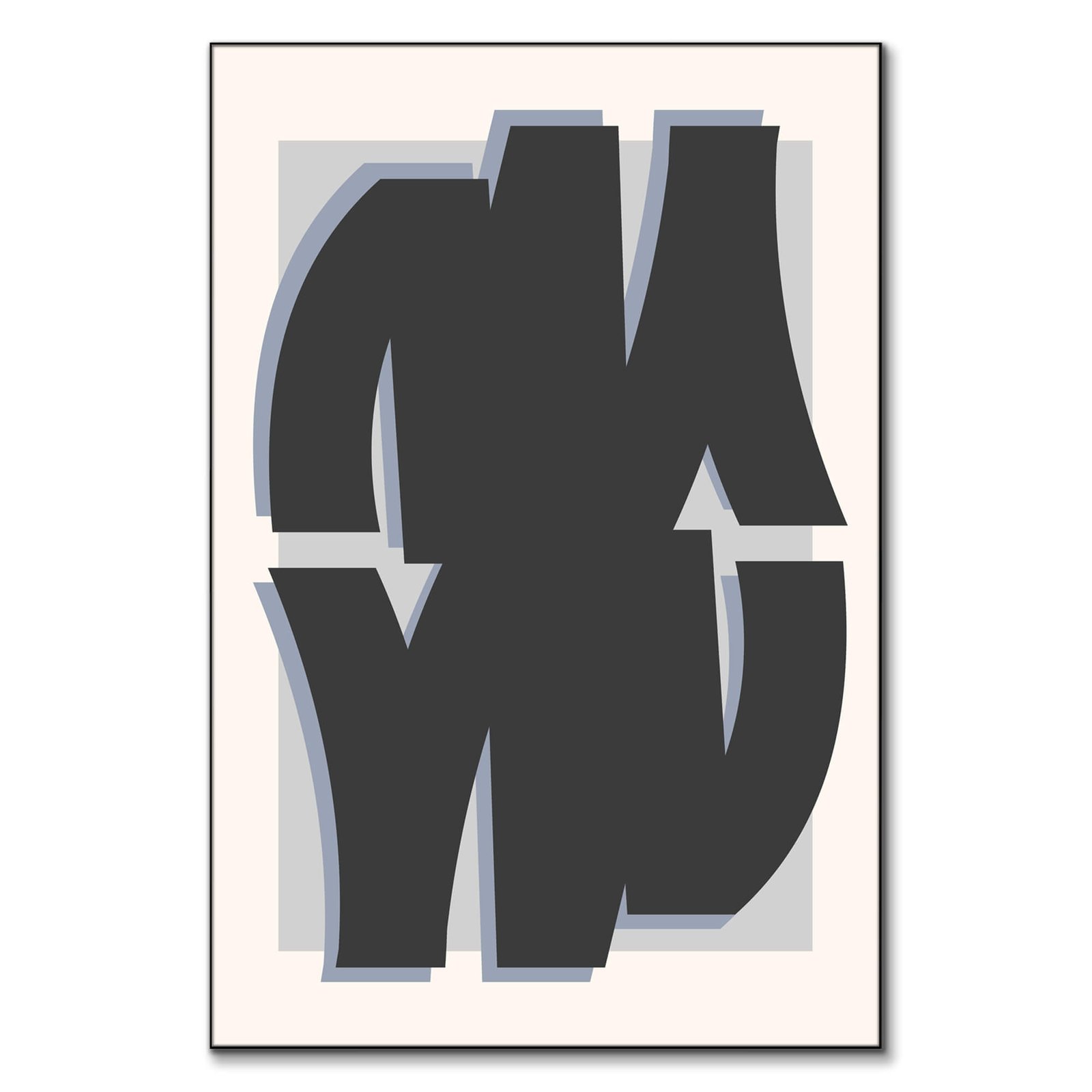This contemporary art print features abstract black lines that sweep and intersect with an energetic grace. Set against a backdrop of graduated grays and subtle blue tones, the lines create a visual journey for the eye, reminiscent of metropolitan structures or the elegant strokes of calligraphy.