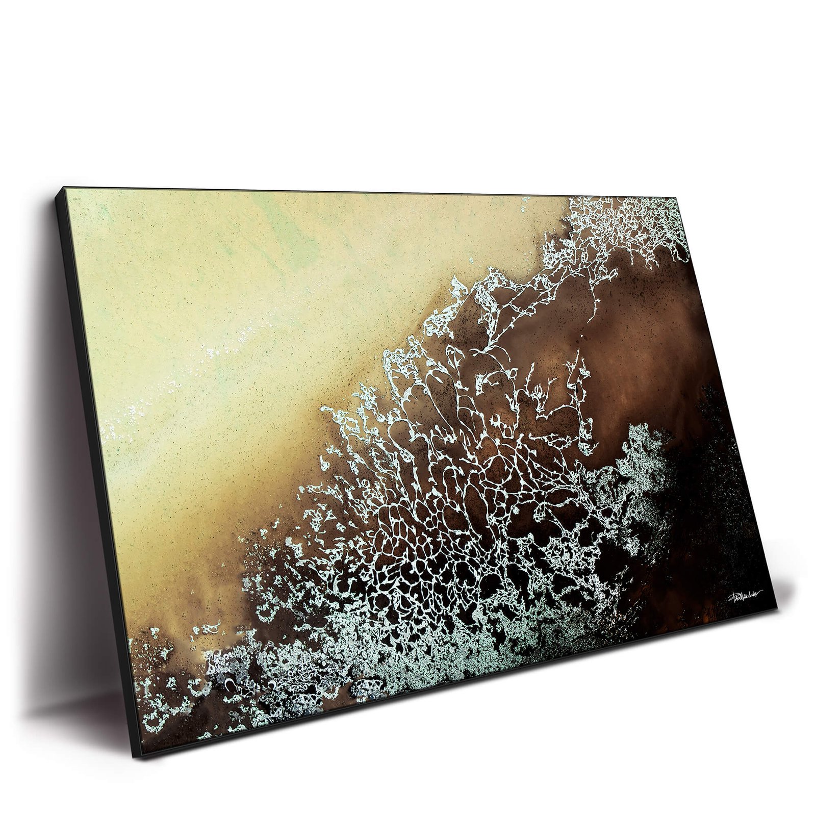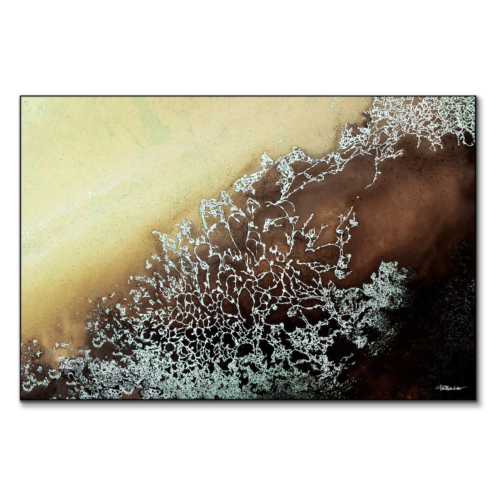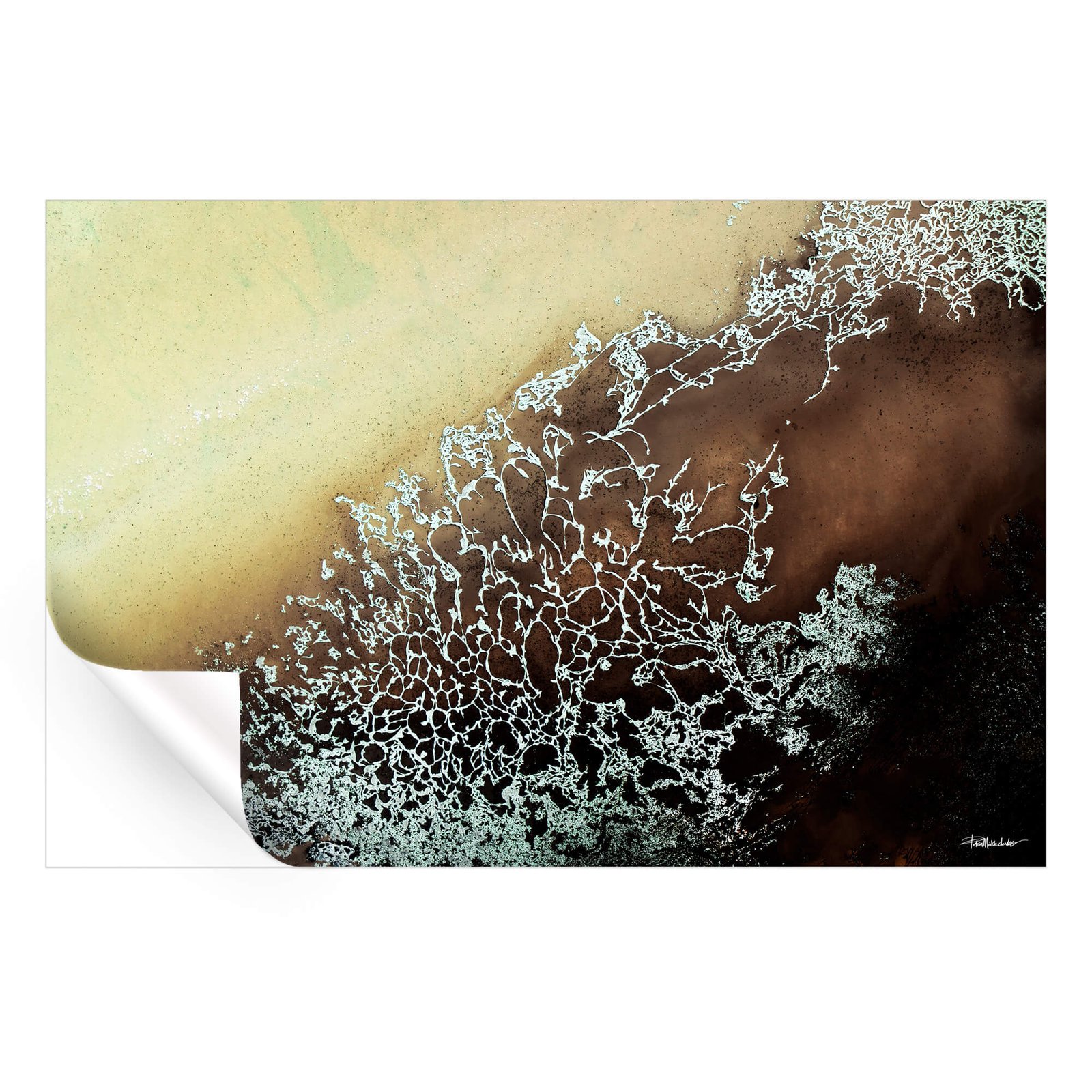 This captivating abstract piece evokes the natural beauty of organic patterns, blending earthy tones with intricate details. The soft gradient of beige and brown contrasts beautifully with the delicate network of textured white lines, suggesting the elegance of frost on glass or the intricate veins of plant life. Printed on high-quality materials, this artwork makes a striking addition to any space, offering a harmonious balance of simplicity and complexity. Perfect for modern interiors, it adds depth and sophistication with its subtle yet powerful visual impact.
