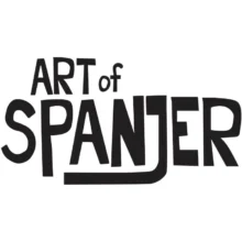 A pastel-blue background immediately sets a cool, calming stage for a gigantic pink bubble of gum that seems ready to pop. The glossy sphere hovers in front of a retro comic-style mouth whose teeth gleam like polished porcelain. Candy-striped highlights race across the gum, adding movement and a playful shine. Thin black outlines, classic to oversized pop art wall art, make every shape snap against the blue. Tiny confetti-like dots float around the bubble, hinting at spring blossoms and sweet sprinkles. The color palette swings from cotton-candy pink to aqua teal, balanced by deep charcoal accents that keep the scene crisp. In the lower corner, Spanjer’s signature appears in vivid yellow, matching reflective glints on the teeth.