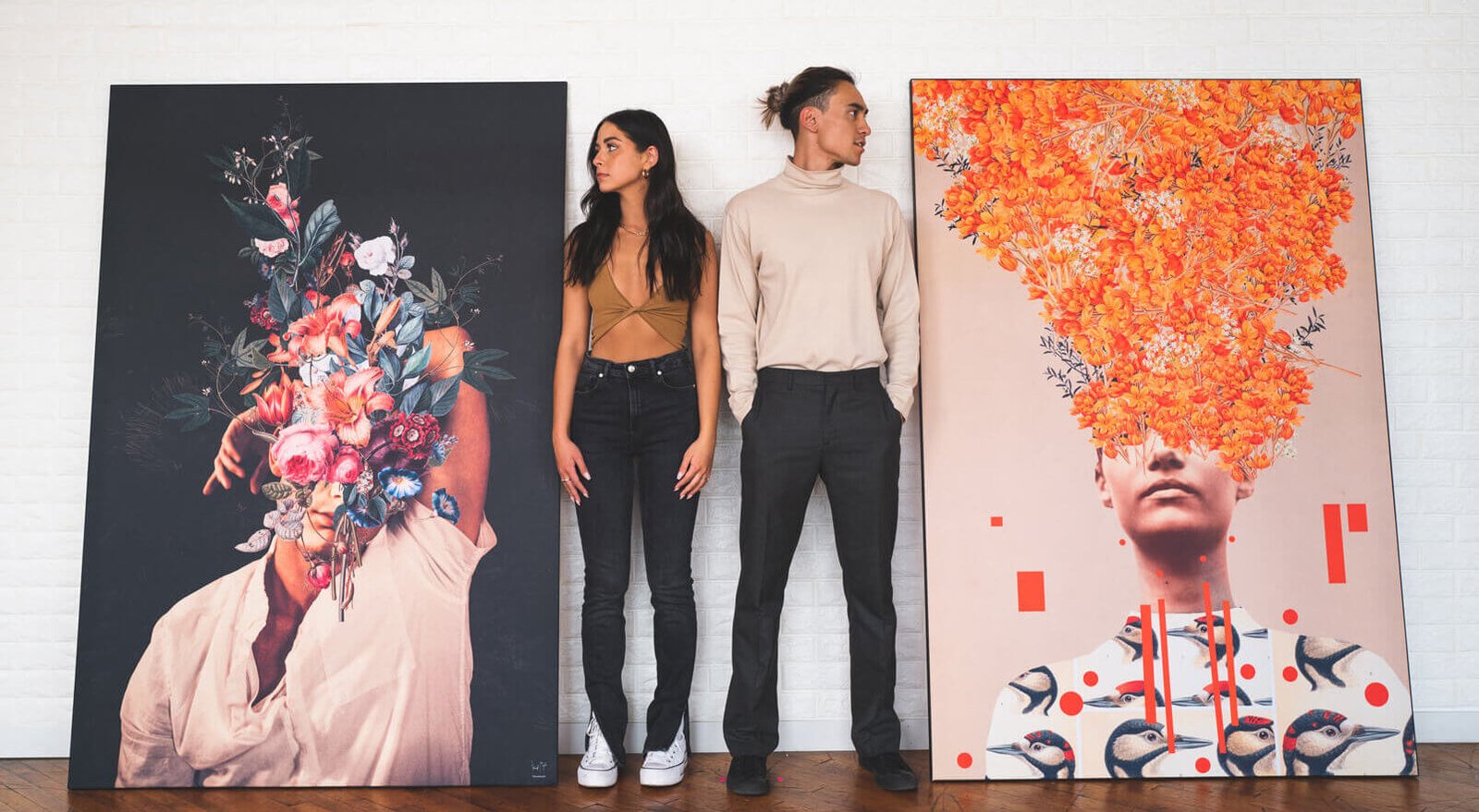 Frank Moth is the Thessaloniki based duo celebrated for retro pop collages that pair nostalgic photos with blooming botanicals. Their art often places flowers where thoughts reside, giving visual form to memory and emotion. Bird Flight In Autumn shows their hallmark warm palette and polished surrealism, making it a collectible wall art print for anyone who loves indie digital painting.