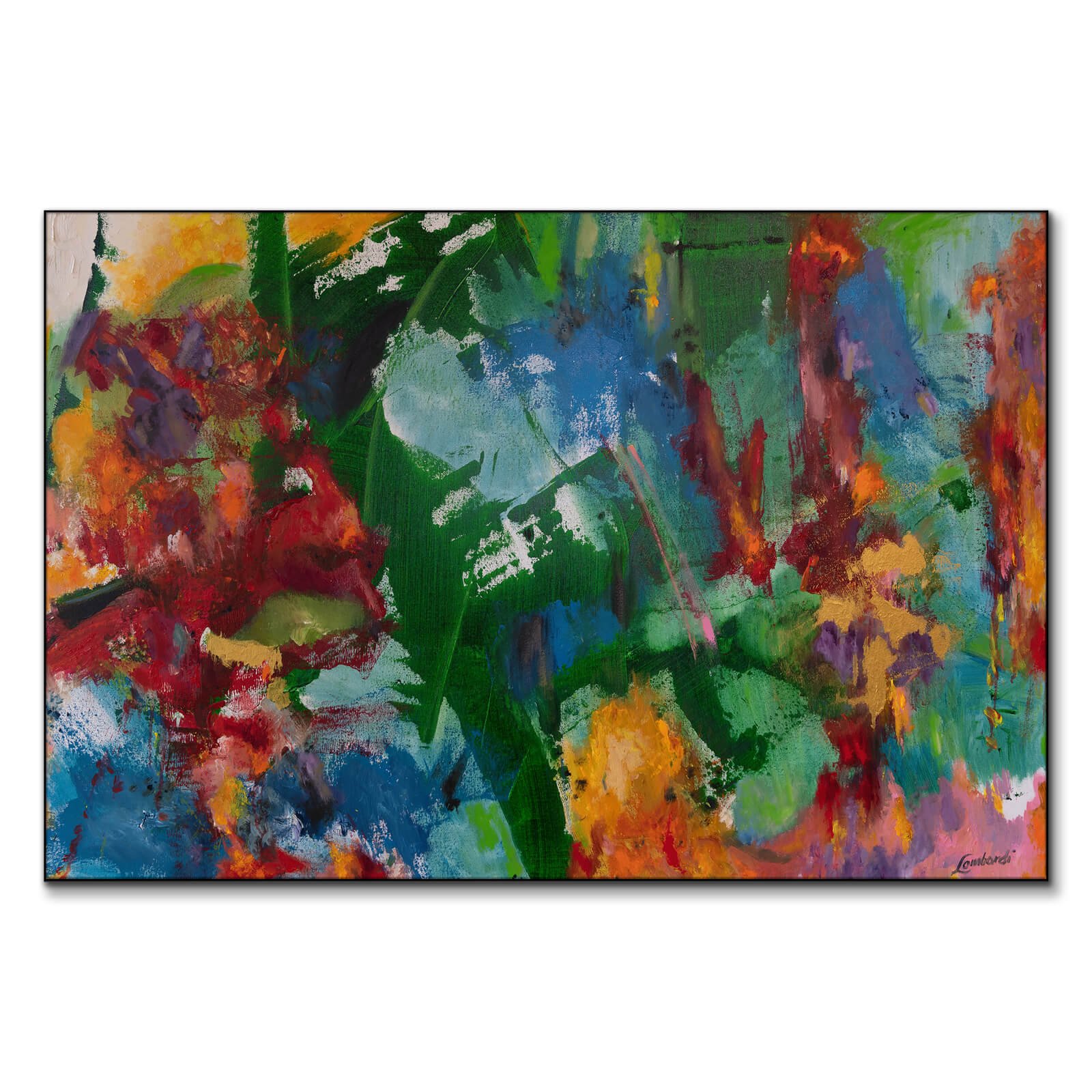 In the midst of this colorful dance, the brushstrokes of Bob Lombardi bring a sense of harmony and wildness together. It’s a snapshot of nature’s palette, where every hue plays a vital role in the visual tale.