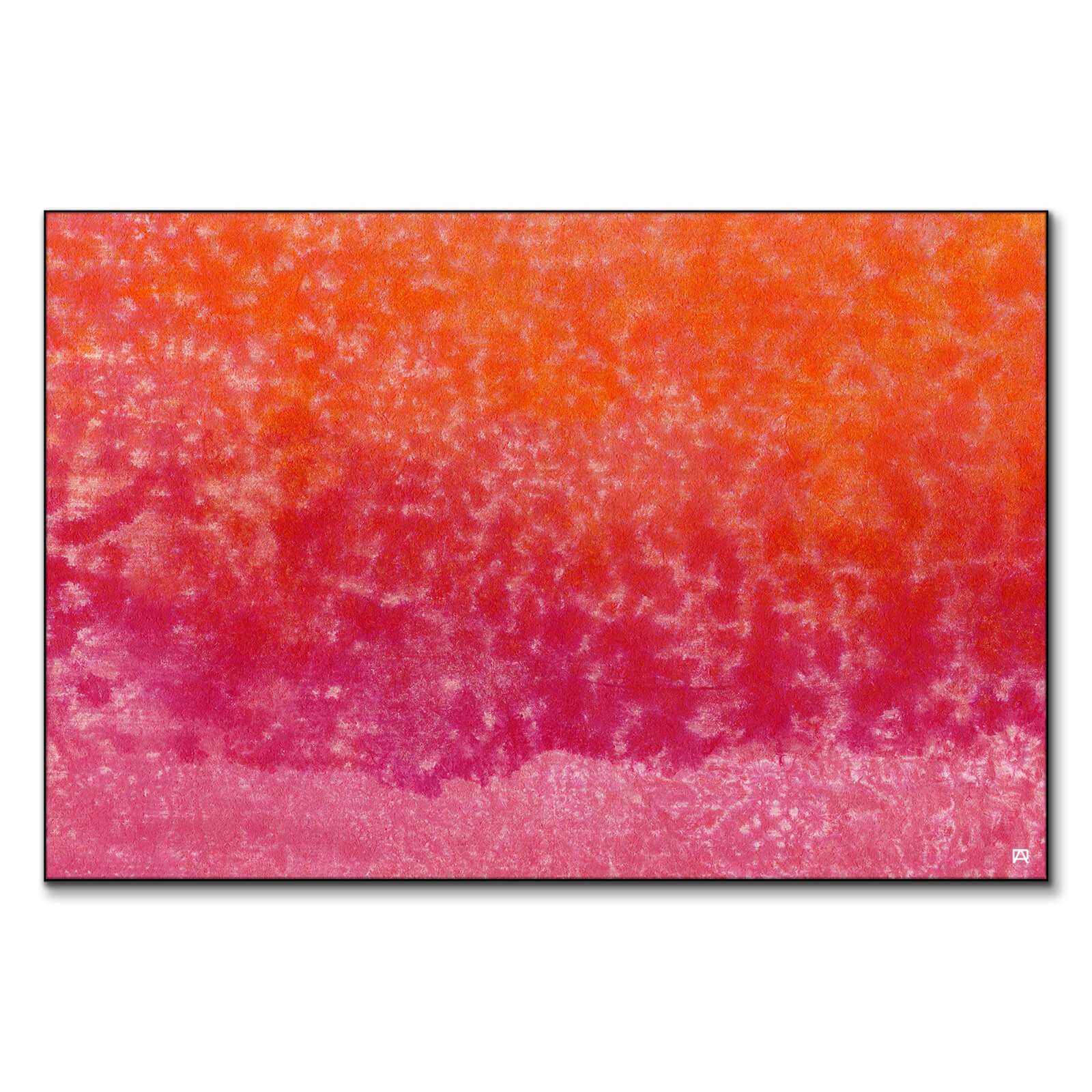 Characterized by its gradient of colors, this pink and orange abstract art transitions from a warm, bright orange to a rich, deep pink.