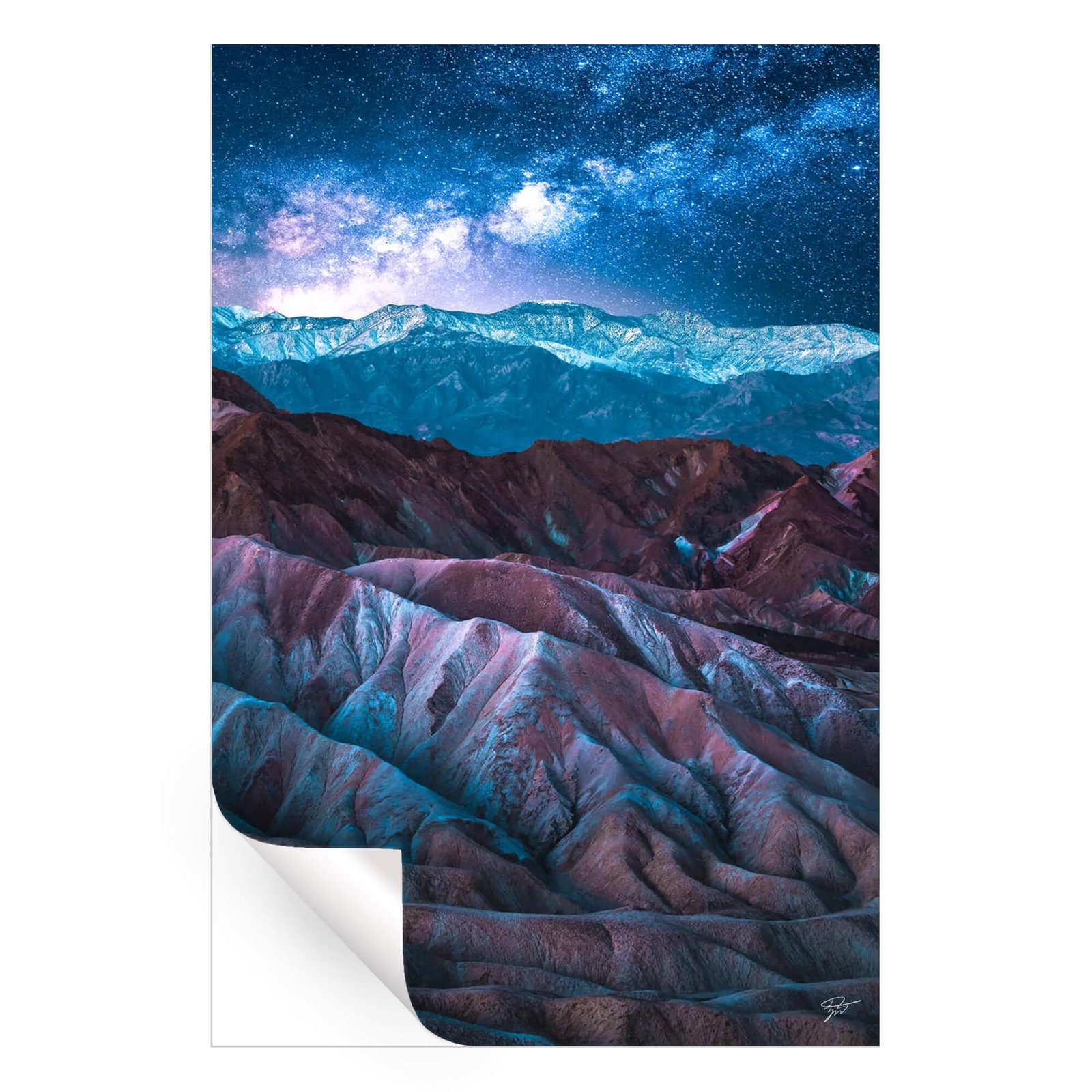 The rich colors of the terrain, with its undulating hills and valleys, are bathed in the ethereal glow of the Milky Way. It’s a moment frozen in time, where the cosmic splendor of the universe casts its light over the earthly wonders, inviting the viewer to ponder the infinite beauty of a clear, unpolluted night sky.