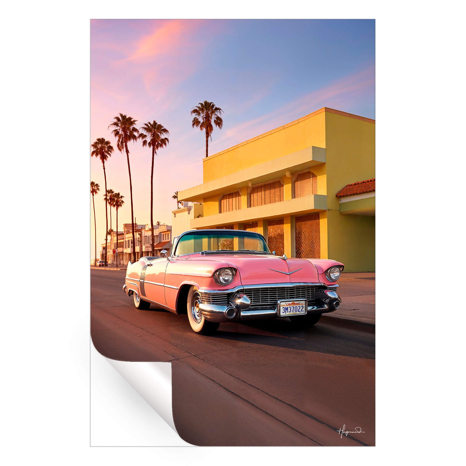 Step back in time with this stunning portrayal of a classic pink Cadillac set against a California sunset backdrop. The perfect fusion of retro elegance and nostalgic charm, this piece brings the iconic spirit of vintage Americana to your decor.