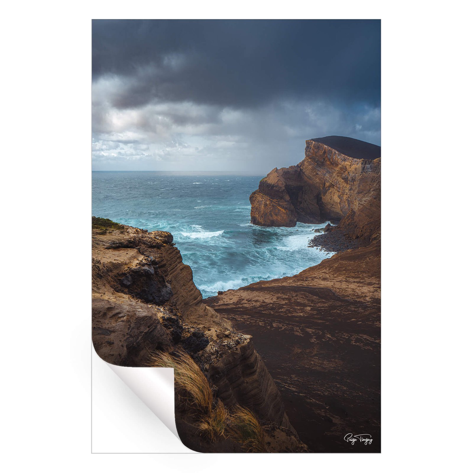 Photographer Paige Tingey reflects her lifelong wanderlust and passion for conservation. Constant travel pushes her to document remote coasts like the Azores, encouraging viewers to value and protect them. Her signature style balances raw power and gentle light, something clearly present in this coastal painting print.
