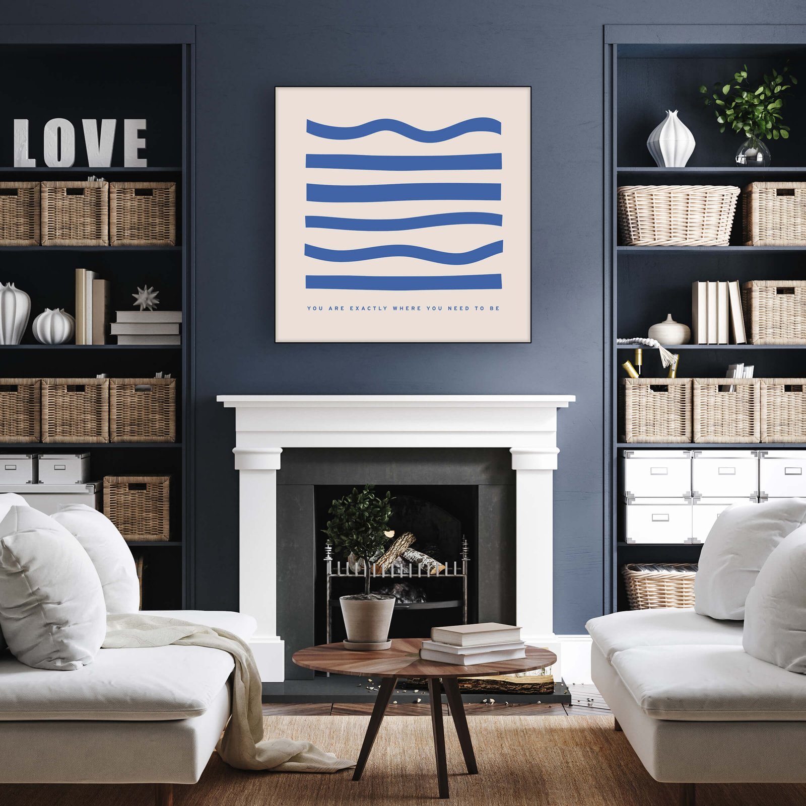 Serene blue waves flow gracefully across a neutral canvas in this creation by Olivia Herrick, evoking a sense of tranquility and continuity. The gentle curves mimic the ebb and flow of tides, symbolizing life’s various phases and the fluidity of experiences.