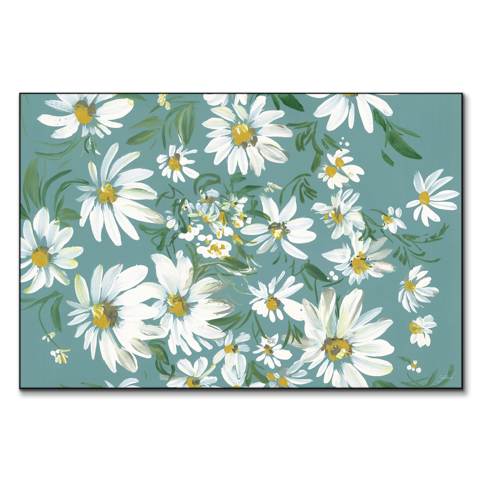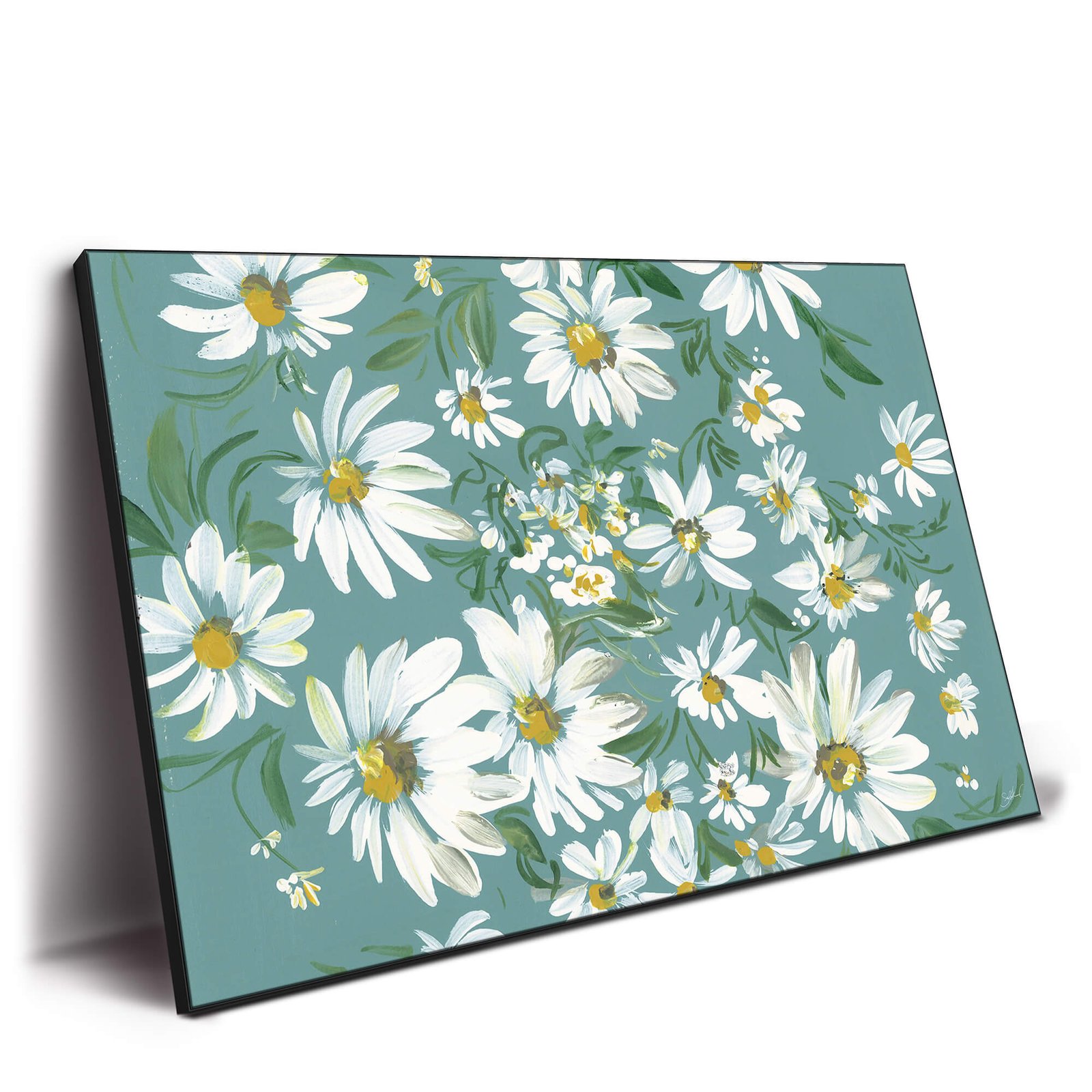 White daisies against a striking teal background highlight the simplicity and beauty of nature. The bold contrast enhances the delicate petals, making this piece a refreshing addition to any space. It embodies a sense of peace and freshness, ideal for brightening up a room.
