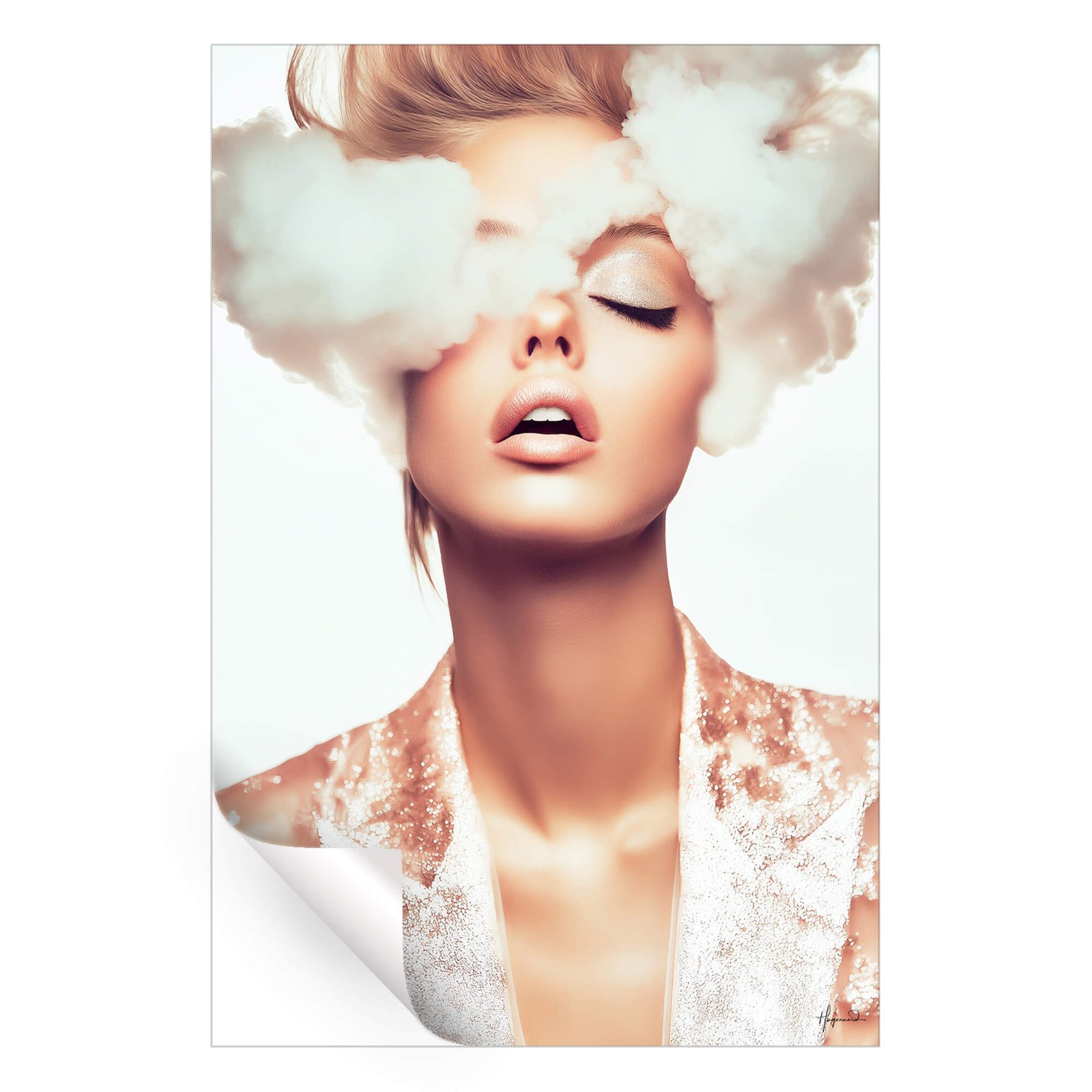 Calming neutral pastel wall art lends spa like serenity to bedrooms, lounges, studios, and salons. The feminine focus belongs naturally to our female portrait artwork while the refined palette aligns with the contemporary wall art collection . Pair it with muted textiles or metallic accents to echo cloud softness and jacket shimmer. Seasonal décor changes stay effortless because ArtFab prints swap without tools. For an even more personal touch consider designing a custom photo collage print that complements this piece.
